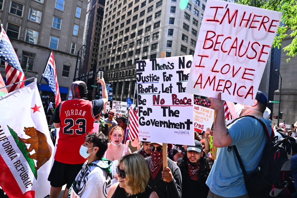 “Once I look out at this gathering I don’t see Daley Plaza, I don’t even see a metropolis, I see America standing up for it’s rights,” Durbin stated in a speech to the group. “I see a rustic that determined in 1776, ‘no extra kings’ in America.”